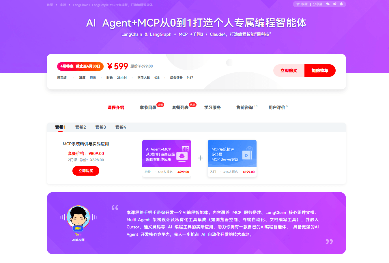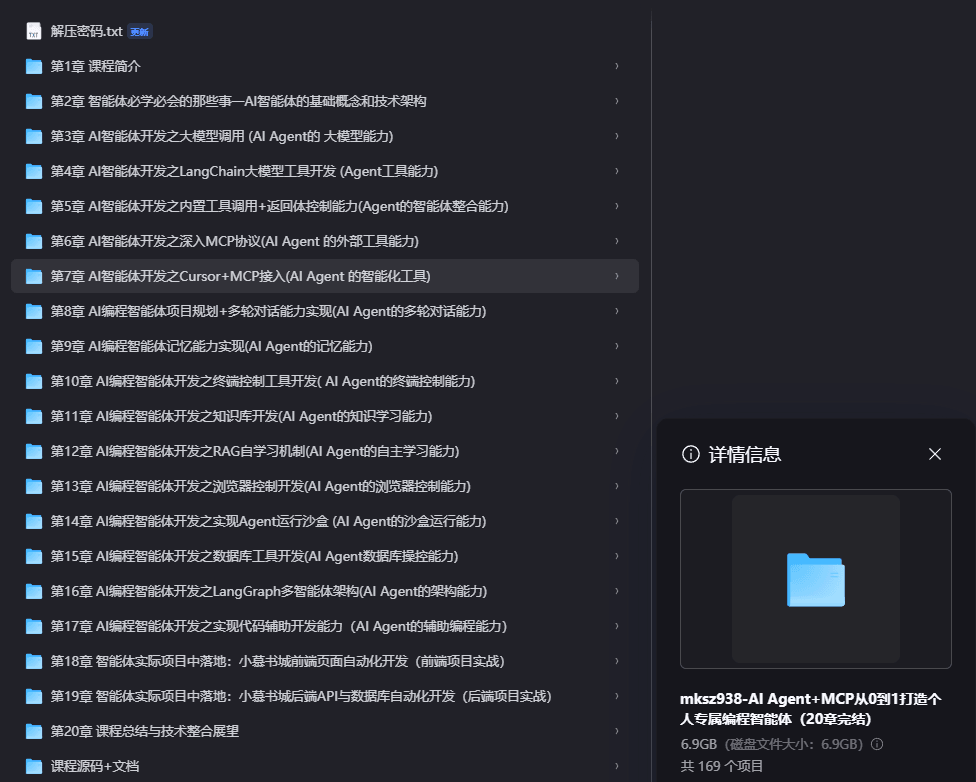 本课程将手把手带你开发一个AI编程智能体。内容覆盖 MCP 服务搭建、LangChain 核心组件实操、Multi-Agent 架构设计及私有化工具集成(如浏览器控制、终端自动化、文档编写工具),并融入 Cursor、通义灵码等 AI 编程工具的实际应用,助力你拥有一款自己的AI编程智能体, 具备更强的AI Agent 开发核心竞争力,先人一步抢占 AI 自动化开发的技术高地。